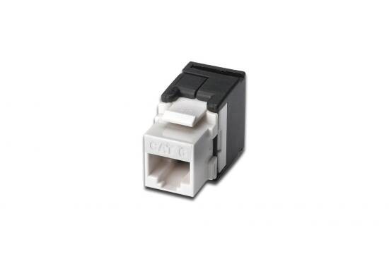 FRUTTO RJ-45 8 POLI DIGITUS PER PRESE A MURO CAT 6 NON SCHERMATO PER RETE.SI INSERISCE IN UNA PLACCA A MURO STANDARD 503.CON MORSETTIERA POSTERIORE, SI INSERISCE IL CAVO DI RETE SENZA BISOGNO DI ATTREZZI (TOOL LESS).DESIGN SOTTILE, SE NE POSSONO INSERIRE 24 ACCOSTATI NEI PANNELLI PATCH DA 24 POSTI 1U.MATERIALE DELLA CUSTODIA: ABS SENZA ALOGENI, UL 94 V0 MATERIALE DEI CONTATTI: BRONZO FOSFOROSO RIVESTIMENTO DEI CONTATTI: NICHEL, PLACCATO ORO 0,6 MICRON MATERIALE DEL PCB: FR4, 1,2 MM DI SPESSORE CICLI DI ACCOPPIAMENTO DEI FRUTTI: 750 TEMPERATURA D'USO: -10°C / +50°C COLORE BIANCOINSERTO JACK UTP NON SCHERMATO RJ45 CAT. 6 TOOLFREEfrutti per reti, jack per reti, vendita online, cavi e connettori, dispositivi di rete, offerte frutti per reti, jack rete, connettori RJ45, elettrojoce.com