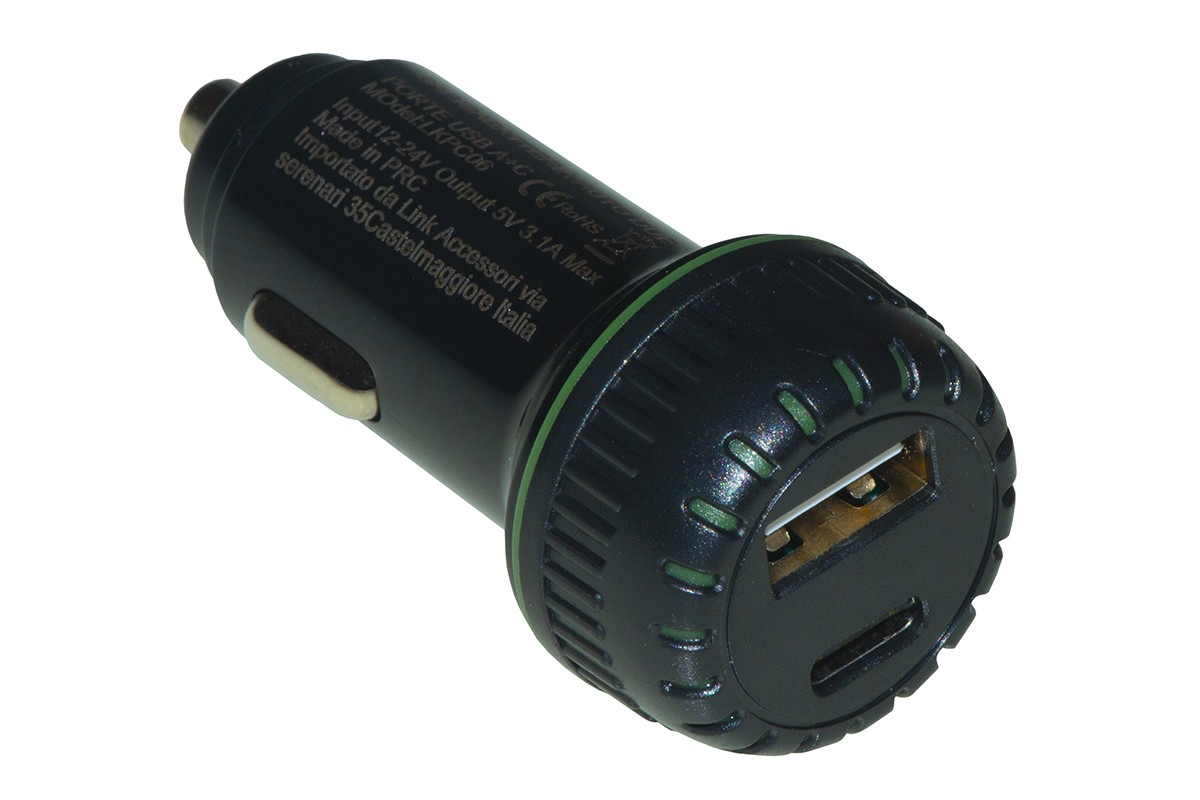 CARICABATTERIA DA AUTO 5 VOLT 3A CON DUE PORTE USB A+C PER SMARTPHONE TABLET