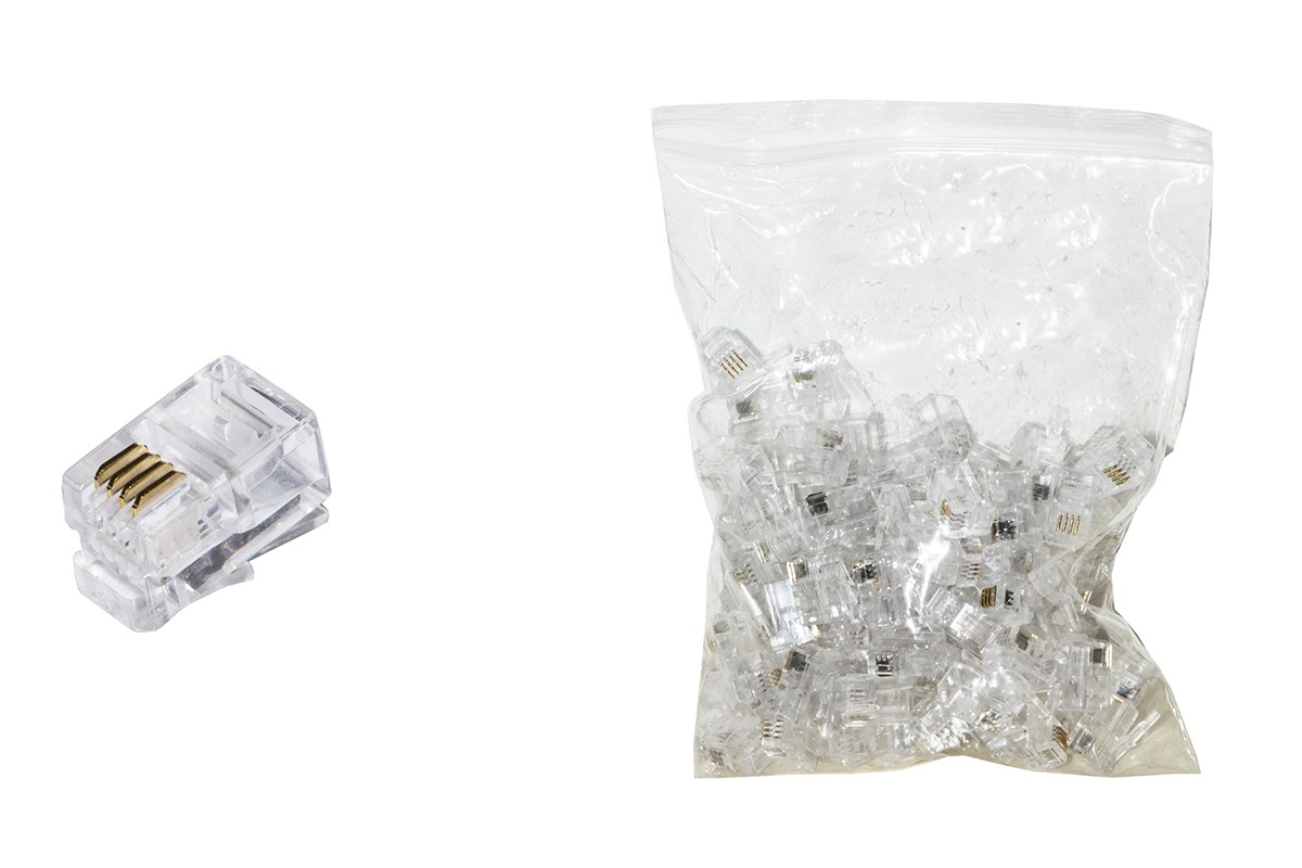 CONFEZIONE 100 PLUG TELEFONICI 4 CONDUTTORI 4 POSIZIONI 4P4C RJ10