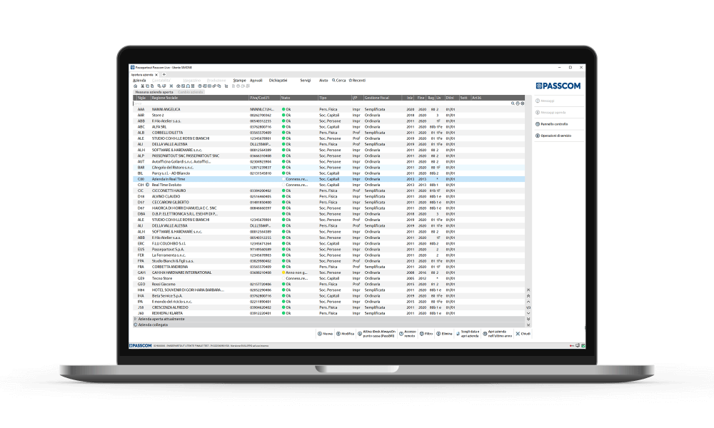 Passcom rappresenta inoltre un innovativo sistema per una reale gestione collaborativa tra commercialista e il cliente poiché integra, alle applicazioni dedicate allo studio, anche soluzioni per piccole e medie imprese. Ogni azienda gestita dallo studio dispone di una stazione di lavoro per gestire clienti, fornitori, prestazioni e articoli, cataloghi, vendite al banco, emissione di fatture, ricevute fiscali, scontrini corrispettivo, che vengono registrati automaticamente in Prima Nota. Le operazioni contabili inserite dall’azienda sono immediatamente visibili dalla postazione del commercialista, mentre per le realtà più grandi o che necessitano di funzionalità gestionali più evolute, sono previsti livelli superiori per l’accesso al sistema con diversi tipi di estensione. Passcom permette allo studio di comunicare in tempo reale con i propri clienti e reperire direttamente le informazioni senza bisogno di trasferimenti di dati fisici o digitali, essendo un ambiente operativo unico e condiviso.